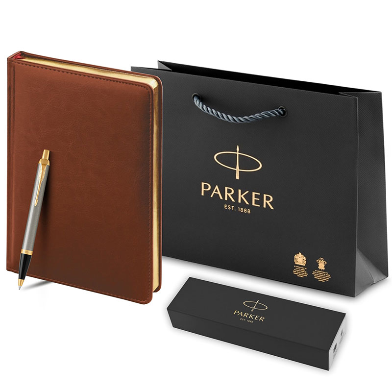 Набор Parker IM Brushed Metal GT из шариковой ручки и ежедневника коричневого цвета в Самаре