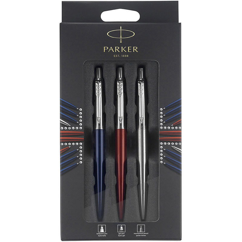 Набор Parker Jotter London Trio: гелевая ручка Red CT + шариковая ручка Blue CT + карандаш Stainless Steel CT и ежедневника триколор в Самаре